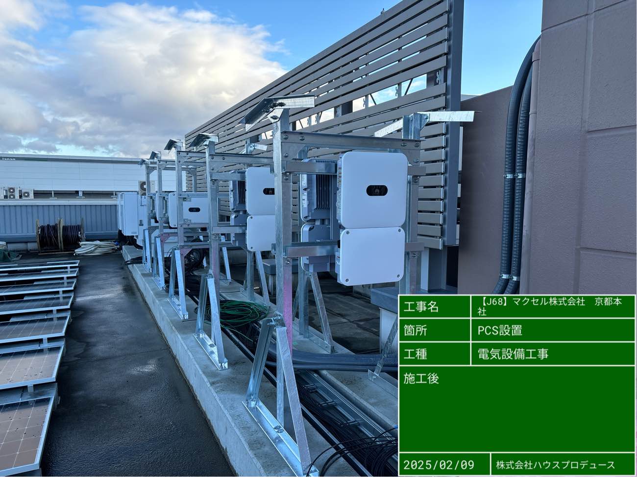 - 本社2棟屋上での大規模実装における設計最適化(パネル719枚の配置、系統接続設計、日中負荷に合わせた自家消費最大化)